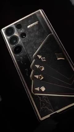 Introducing the Samsung S25 Ultra in a bespoke design. With a deep black titanium body, gold accents, the iconic Viper pistol, and an hourglass embedded in the grip, this smartphone is a statement of individuality and power.