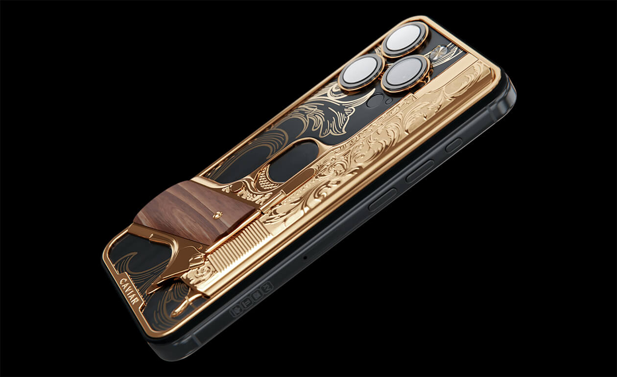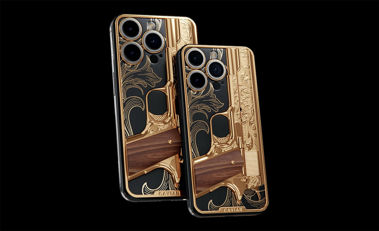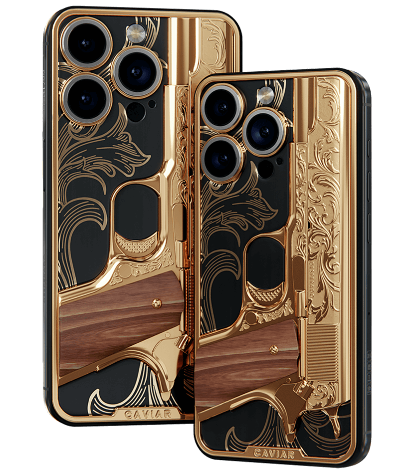 Caviar offers you a special pistol that never misfires. Notorious is a decorative element coated in 24K gold. It doesn't shoot bullets, but it hits the heart.