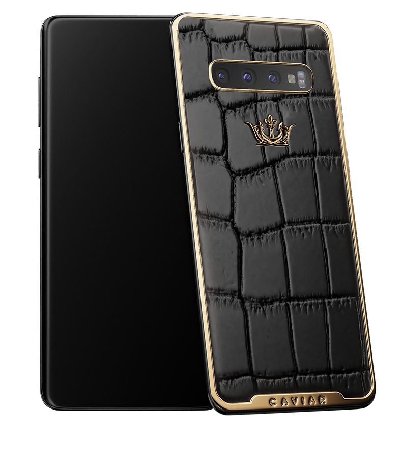 In the design of the phone Caviar Classic Corona Alligatore, the natural black alligator leather and refined gold-plated accents in form of a plate with the brand name and emblem presenting a crown, have been combined into a convincing tandem. By the way, pay some attention to this element and you’ll see that the crown is literally built of several components – two royal sturgeons, rushing towards each other and the image of an anchor embodying the constancy and stability.