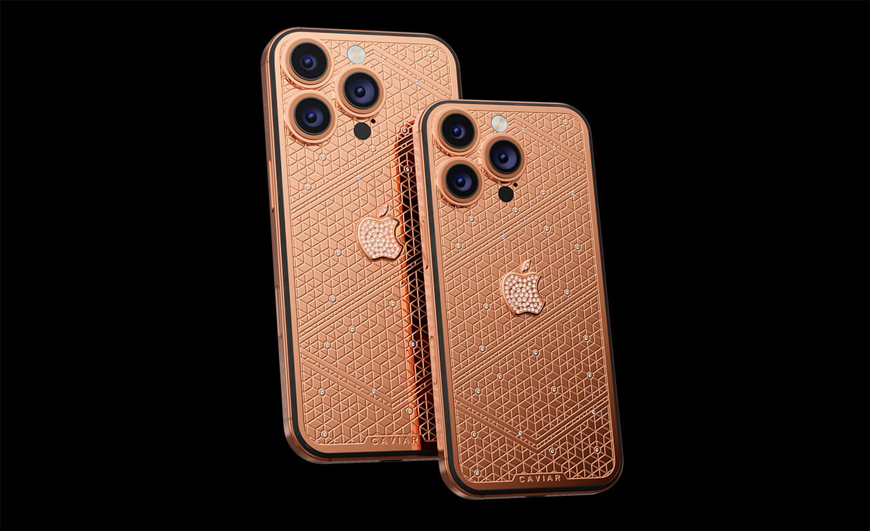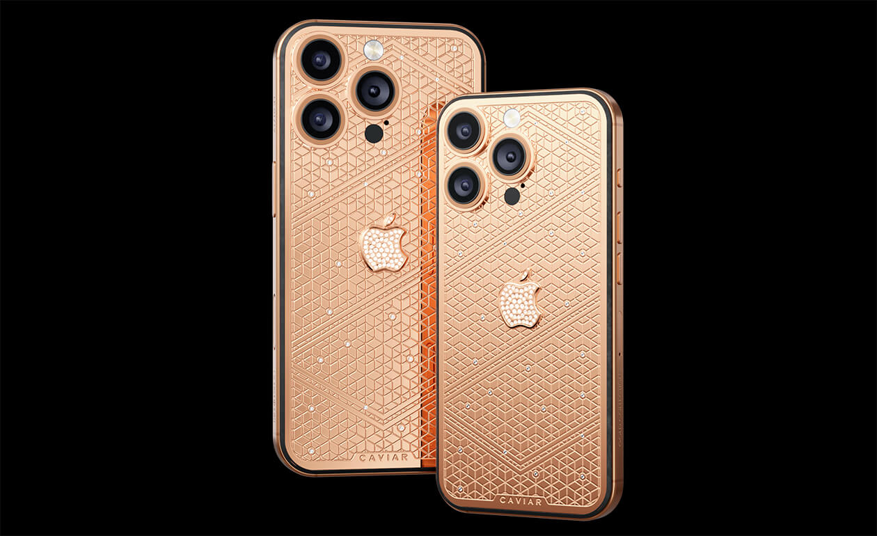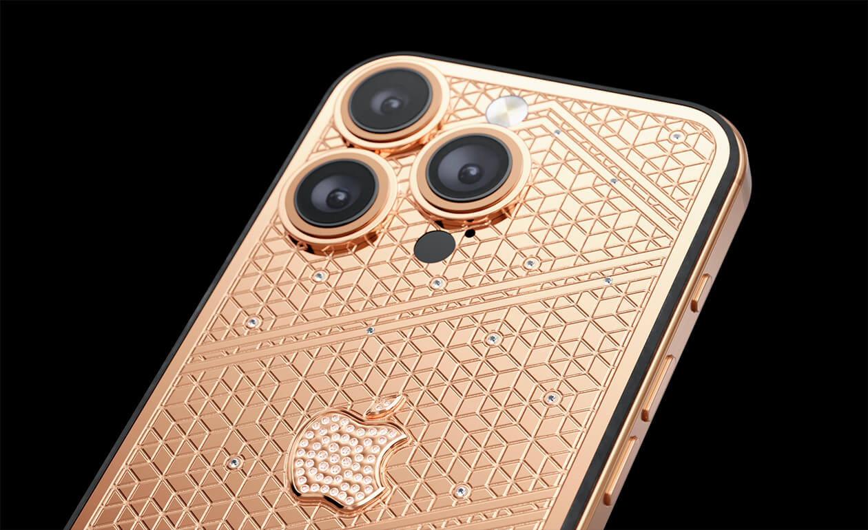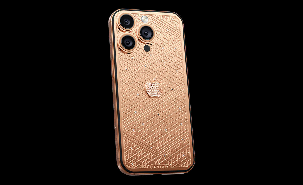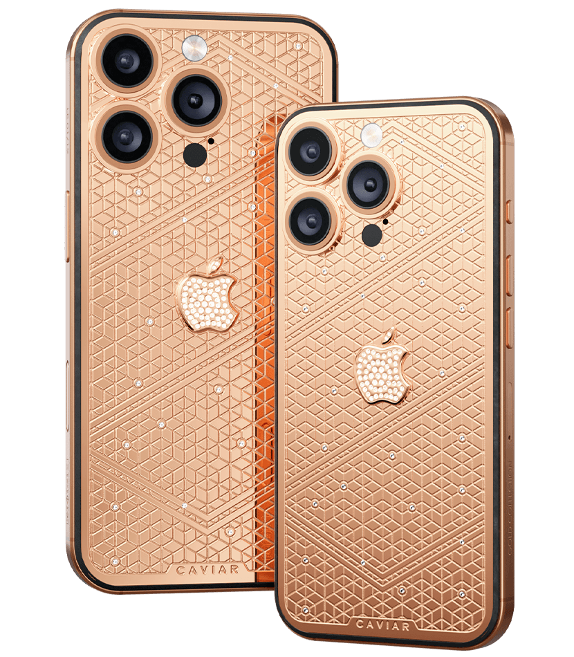 Caviar's masters have captured the golden sunlight reflections in the iPhone's body. The vivid asymmetry of lines symbolizes creative chaos and the quest for an antique ideal. We have complemented this golden extravaganza with a sprinkling of diamonds. At the center - a precious apple made of diamond mosaic.