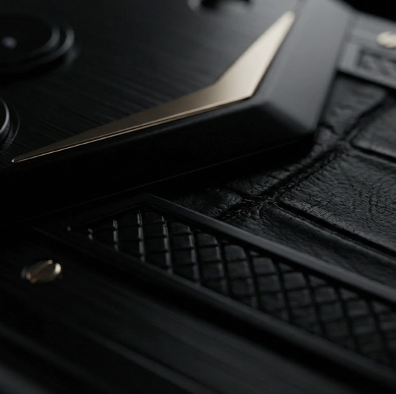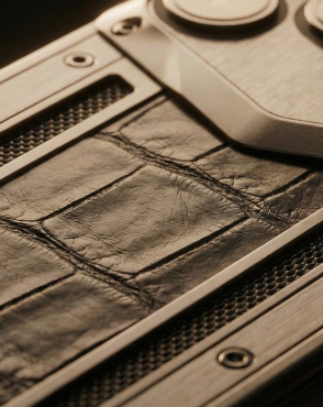 Shadow is the first model in the Black Edition series, built upon the new fully black chassis. Its design is minimalist and severe. The smartphone is embellished with noble materials: aerospace titanium panels and inserts of natural crocodile leather. Shadow makes the ideal companion for connoisseurs of classic business style.