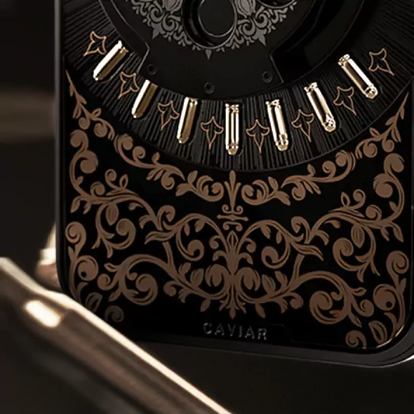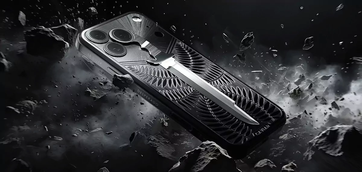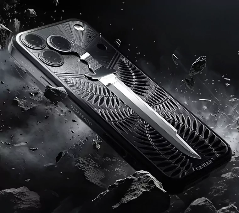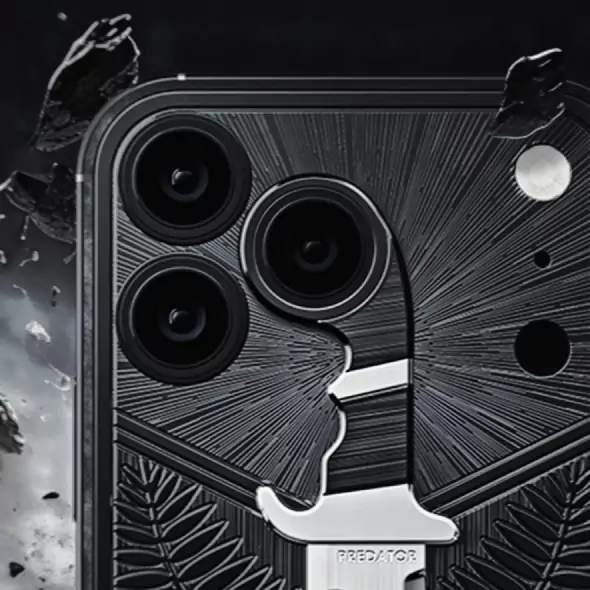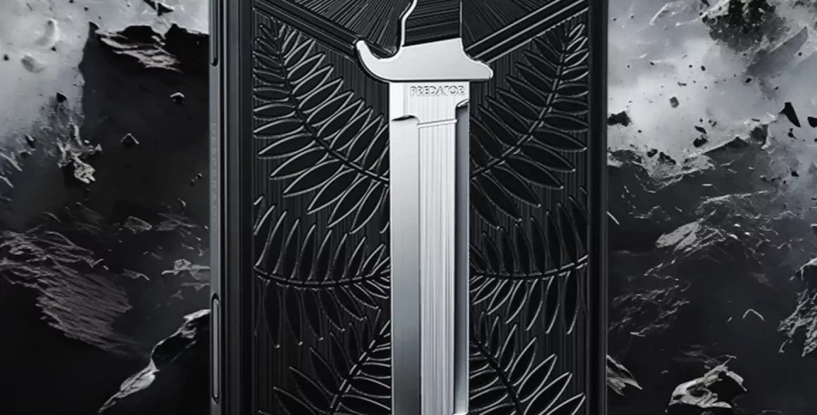 The back of the phone features a titanium relief of the iconic Predator survival machete — a blade that became legendary after the film of the same name. To be a predator is to advance, no matter the fear.