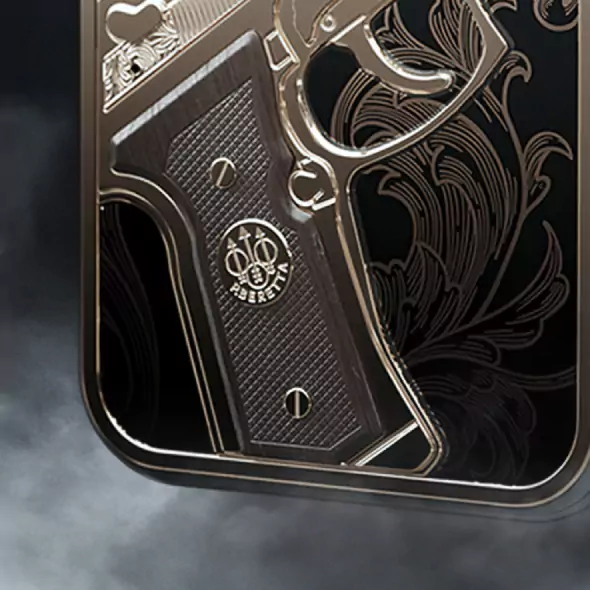 Engraved on the back — the legendary Beretta 92, the weapon of John McClane in Die Hard, and many cinematic heroes.