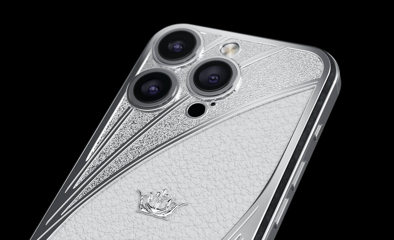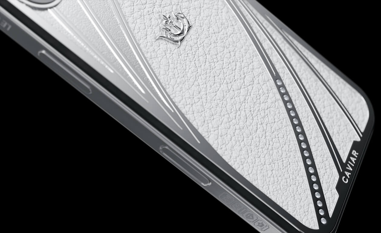 The Caviar iPhone Blanc is designed for true connoisseurs of elegance and stylish minimalism. The device's body is adorned with pristine white leather, giving it a refined and sophisticated appearance. Harmoniously paired with the leather are 22-carat silver inserts, intricately set with 18 Swarovski crystals. Crafted in the tenniscore style, this luxurious smartphone embodies the perfect blend of simplicity and opulence, highlighting your unique taste and pursuit of perfection.