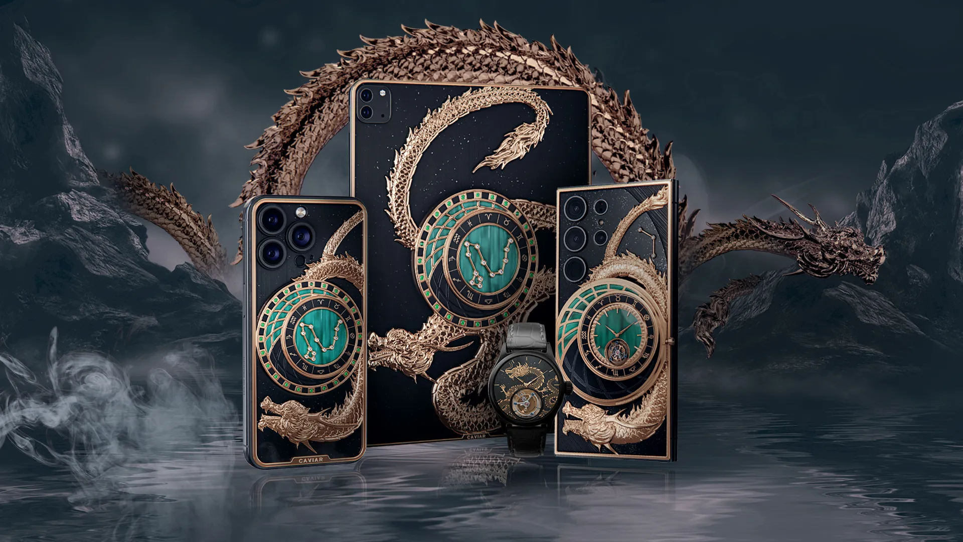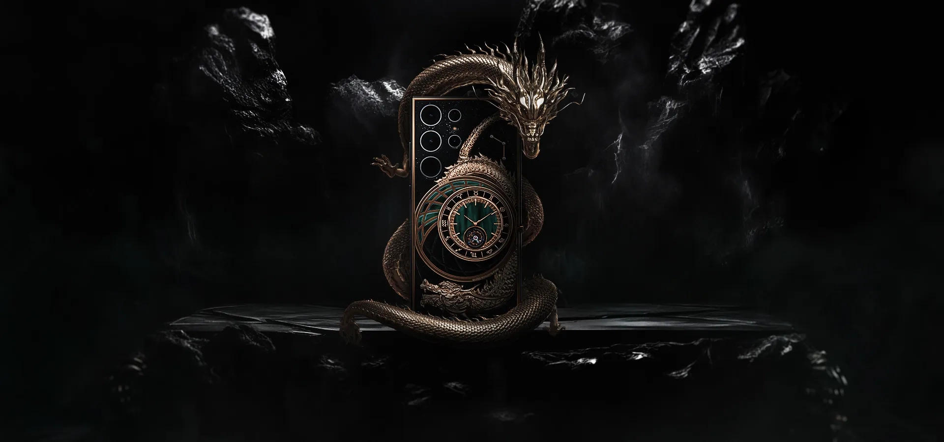 Indulge in the harmony of details - Caviar mechanical watch with a tourbillon and a green dial, voluminous dragon bas-relief, zodiac circle coated with 24-karat gold, a diamond constellation, reminiscent of Samsung's history. Only 24 pieces available worldwide.