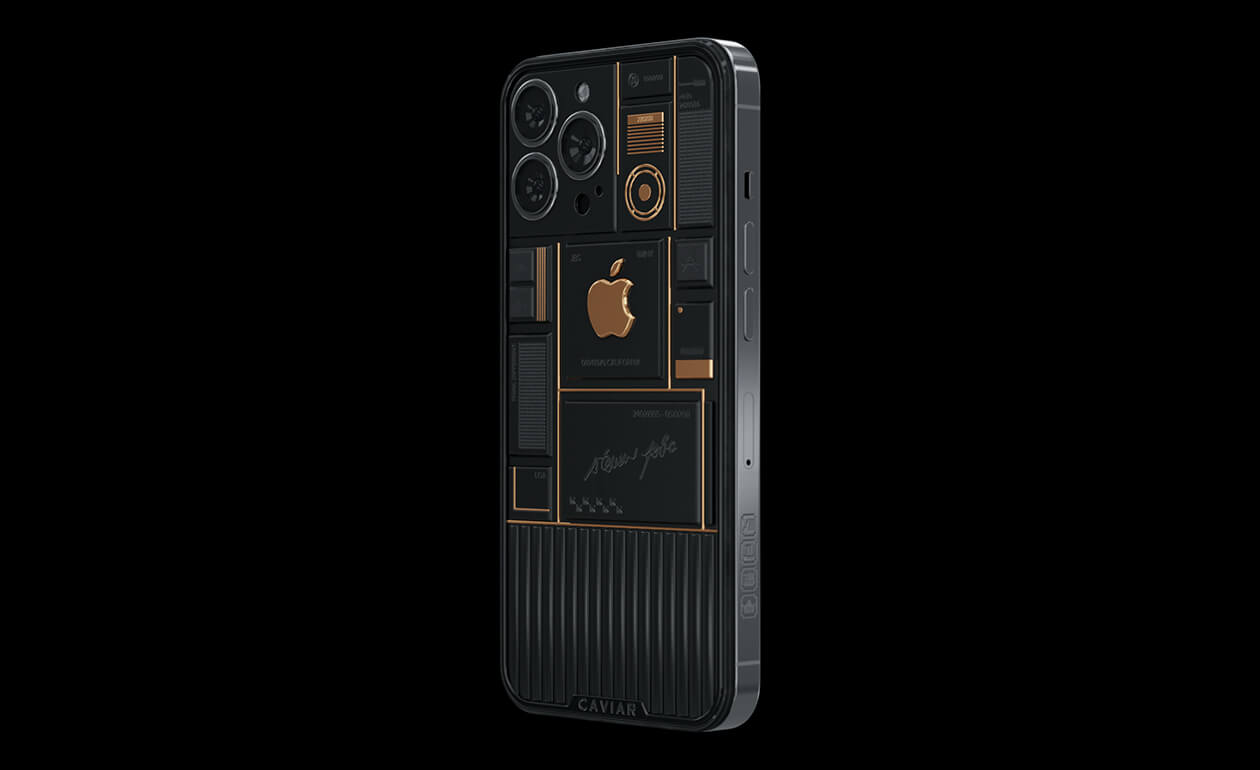 The Steve Jobs-inspired iPhone 17 Pro is crafted from impact-resistant black PVD titanium. The heart of the design is Apple's signature - a golden bitten apple. Contrasting decorative elements, plated with 24-karat yellow gold in double electroplated technique, a luxurious duo of deep blacks and precious metal shine.