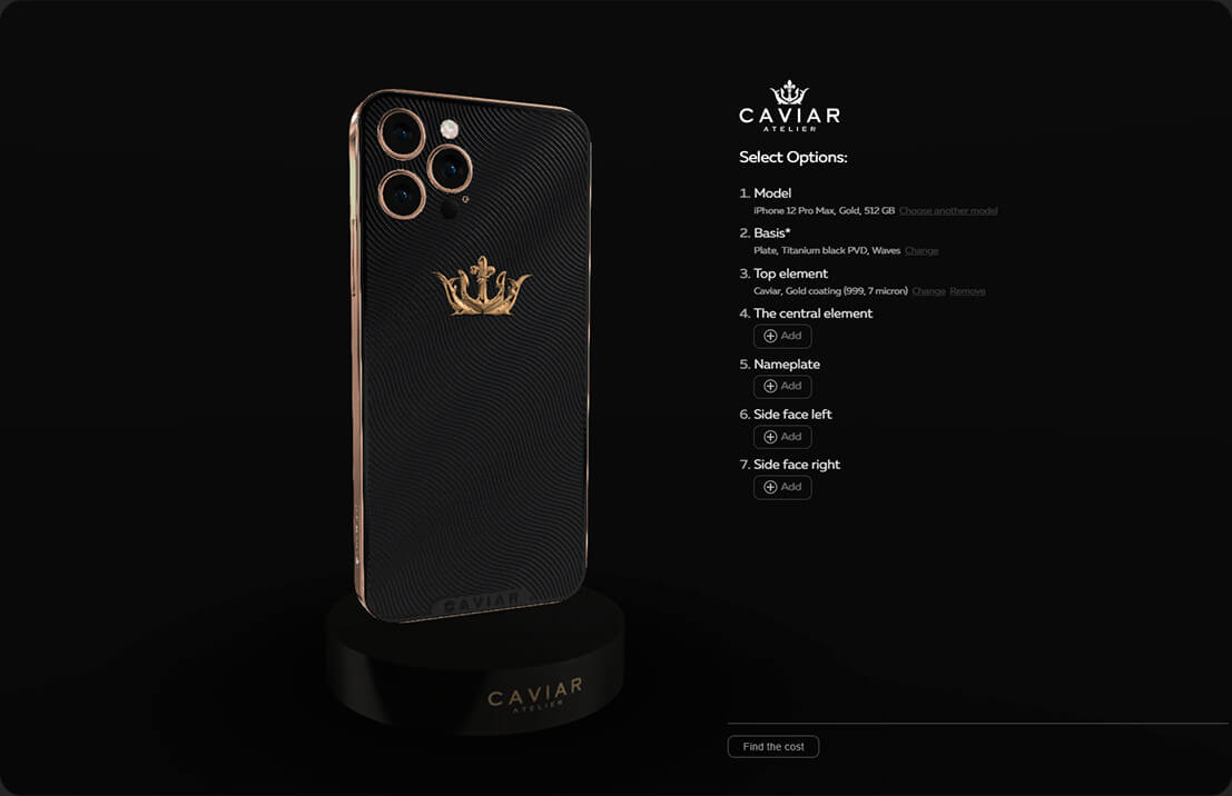 Caviar Atelier is an exclusive design studio. We work with individual orders only creating unique, one-of-a-kind phone modifications based on the iPhone 13, 15 and the newest Samsung phones.
