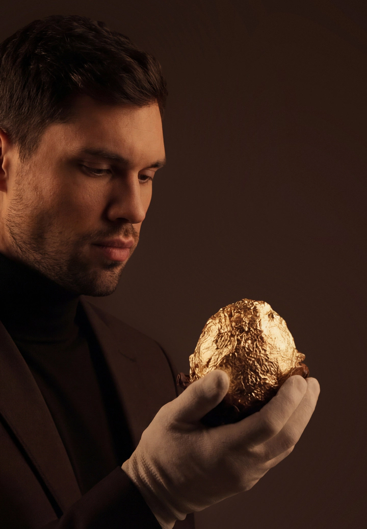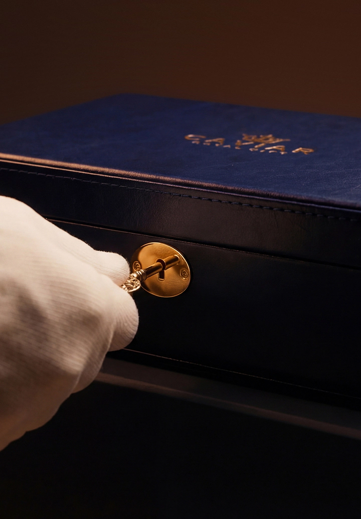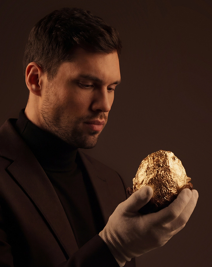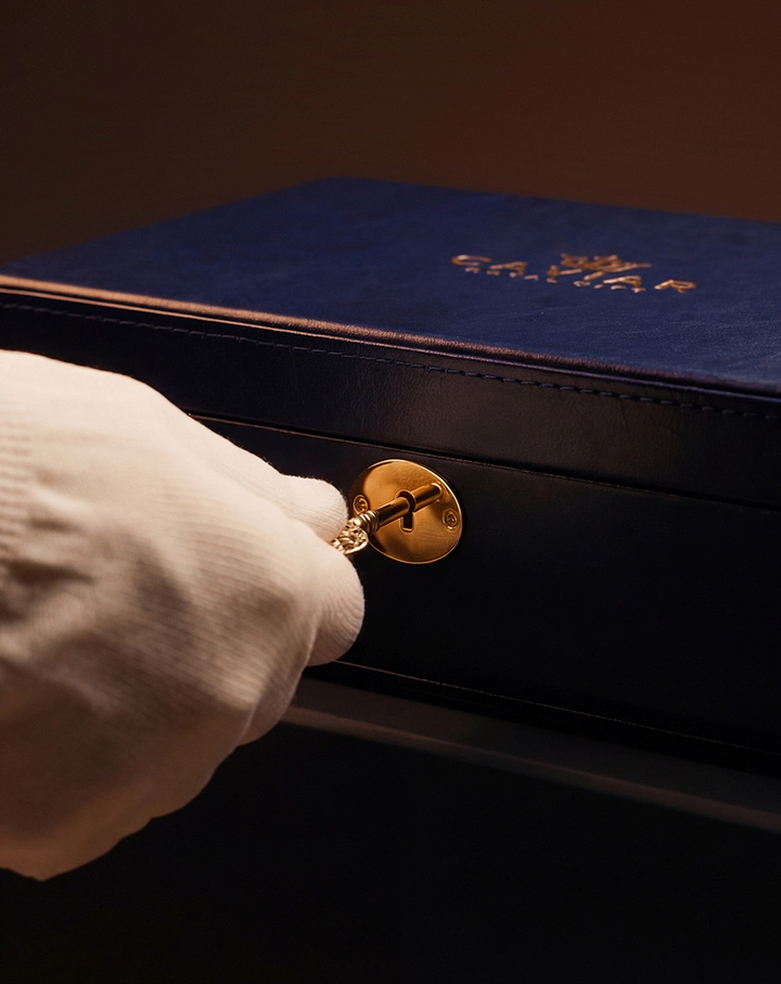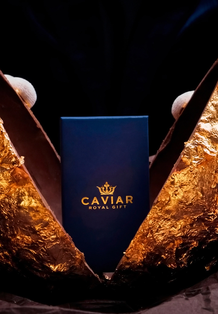 The deep blue hue of the packaging creates an atmosphere of silence. Inside lies gold, concealed until the climactic moment. The textured surface of the egg highlights the craftsmanship, the materiality, and the weight of the gesture. This is true anticipation. A gift that begins with a pause — and continues with a lasting impression.