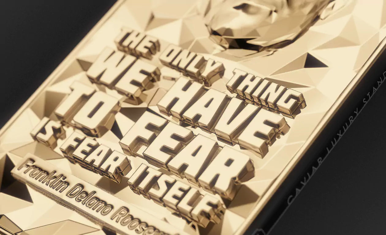 Body inscription: Engraving of the phrase “The only thing we have to fear is fear itself” and a plate with the name “Franklin Delano Roosevelt”, gold covering (according to the technology Double Electroplated (7 microns, 999 content))